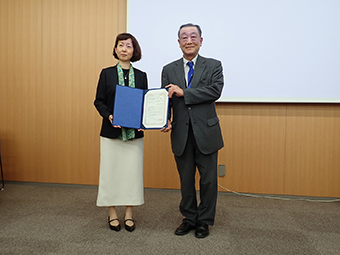 授賞記念講演をする新関公子先生(東京藝術大学名誉教授)