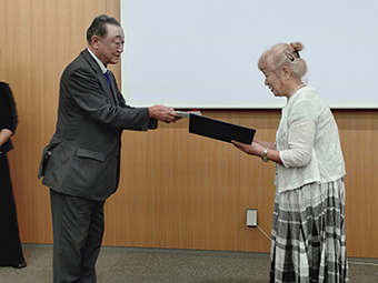 授賞記念講演をする新関公子先生(東京藝術大学名誉教授)